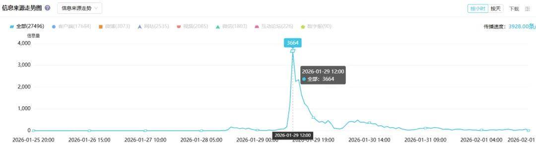 情两次波峰“金晨”舆,爆料及媒体体贴一是1月29日,报及金晨抱歉二是警情通。处于热议之中相干舆情仍)